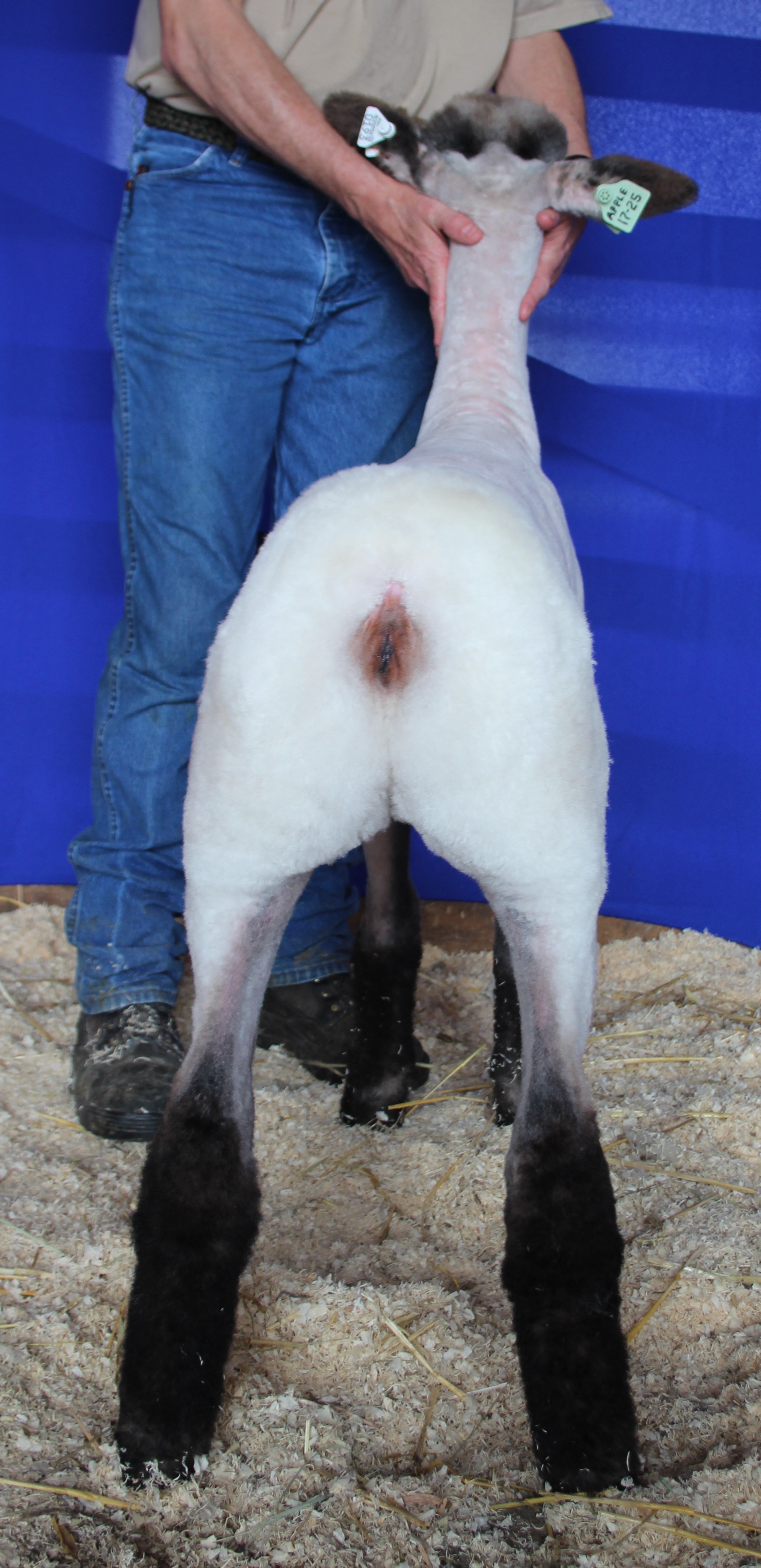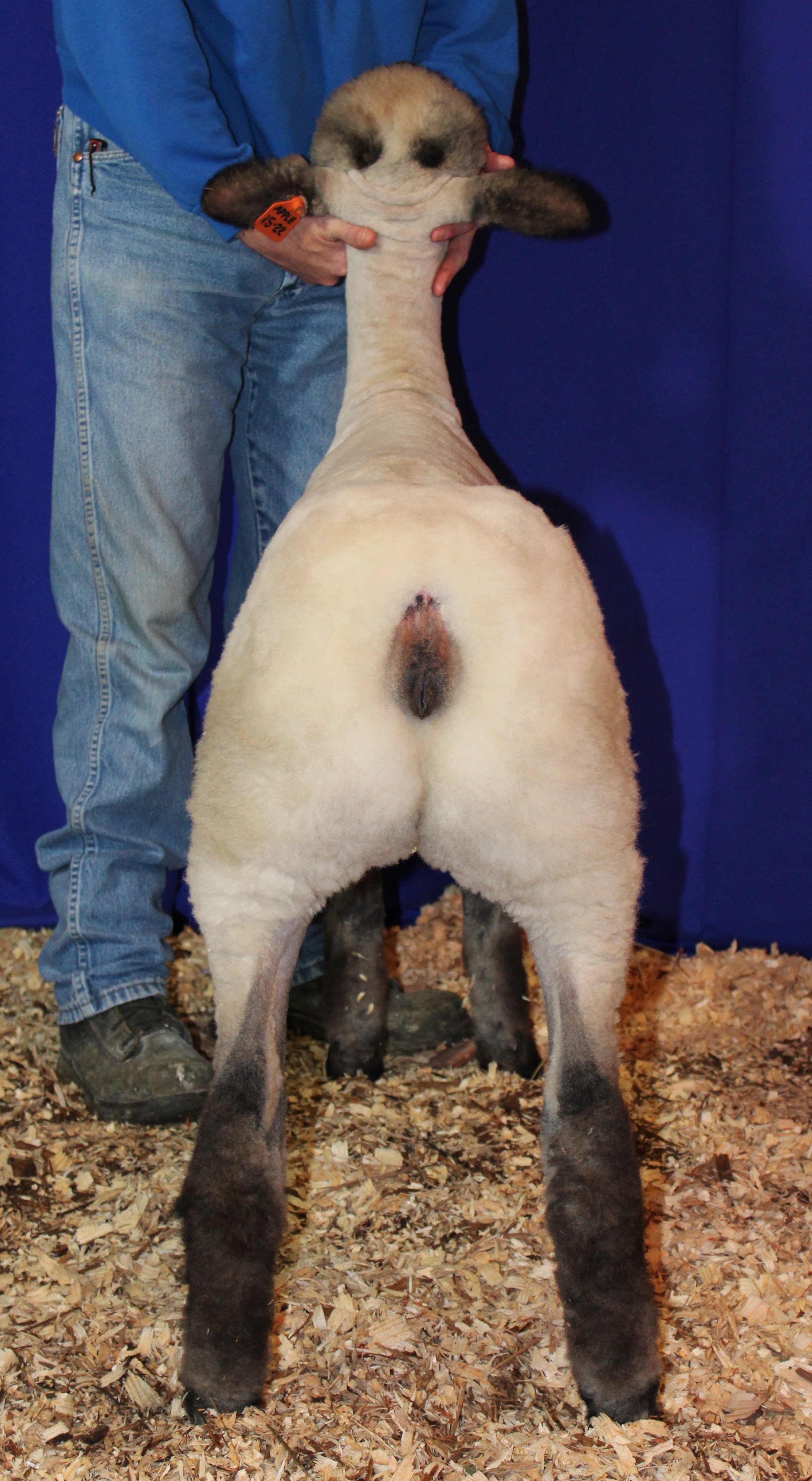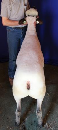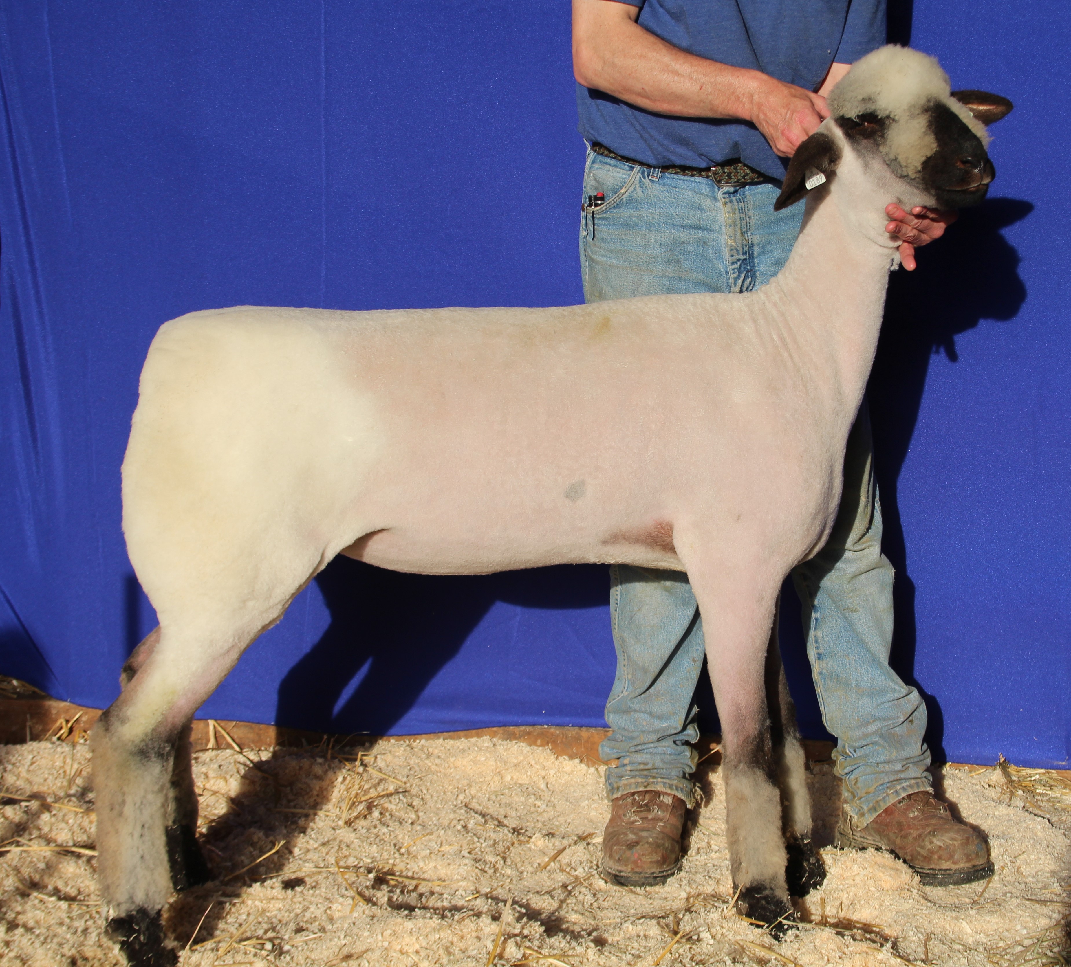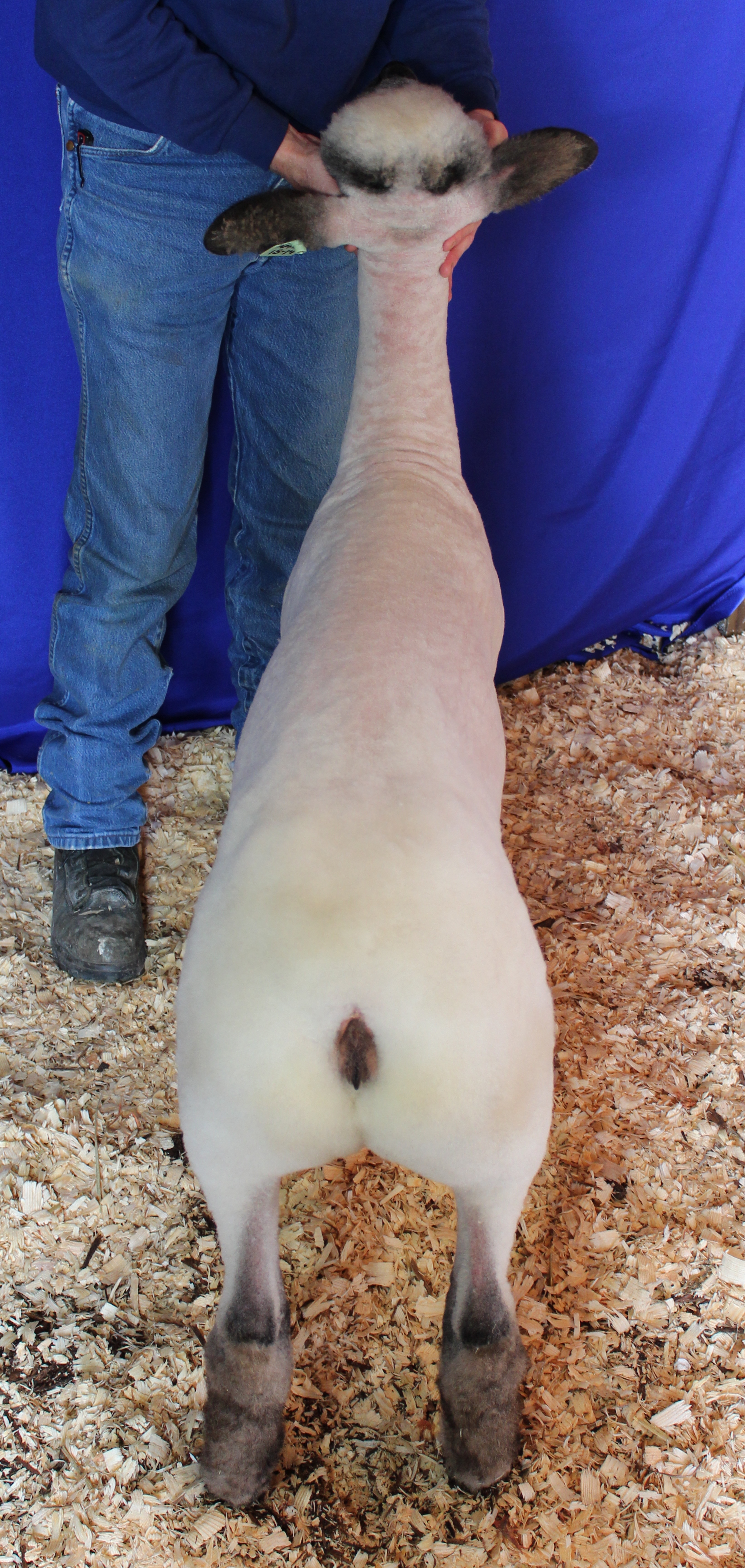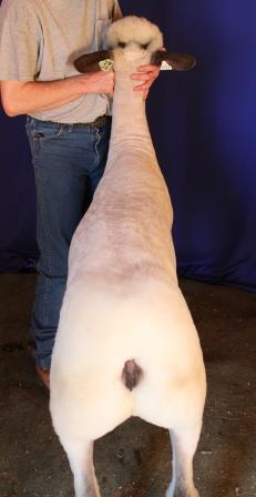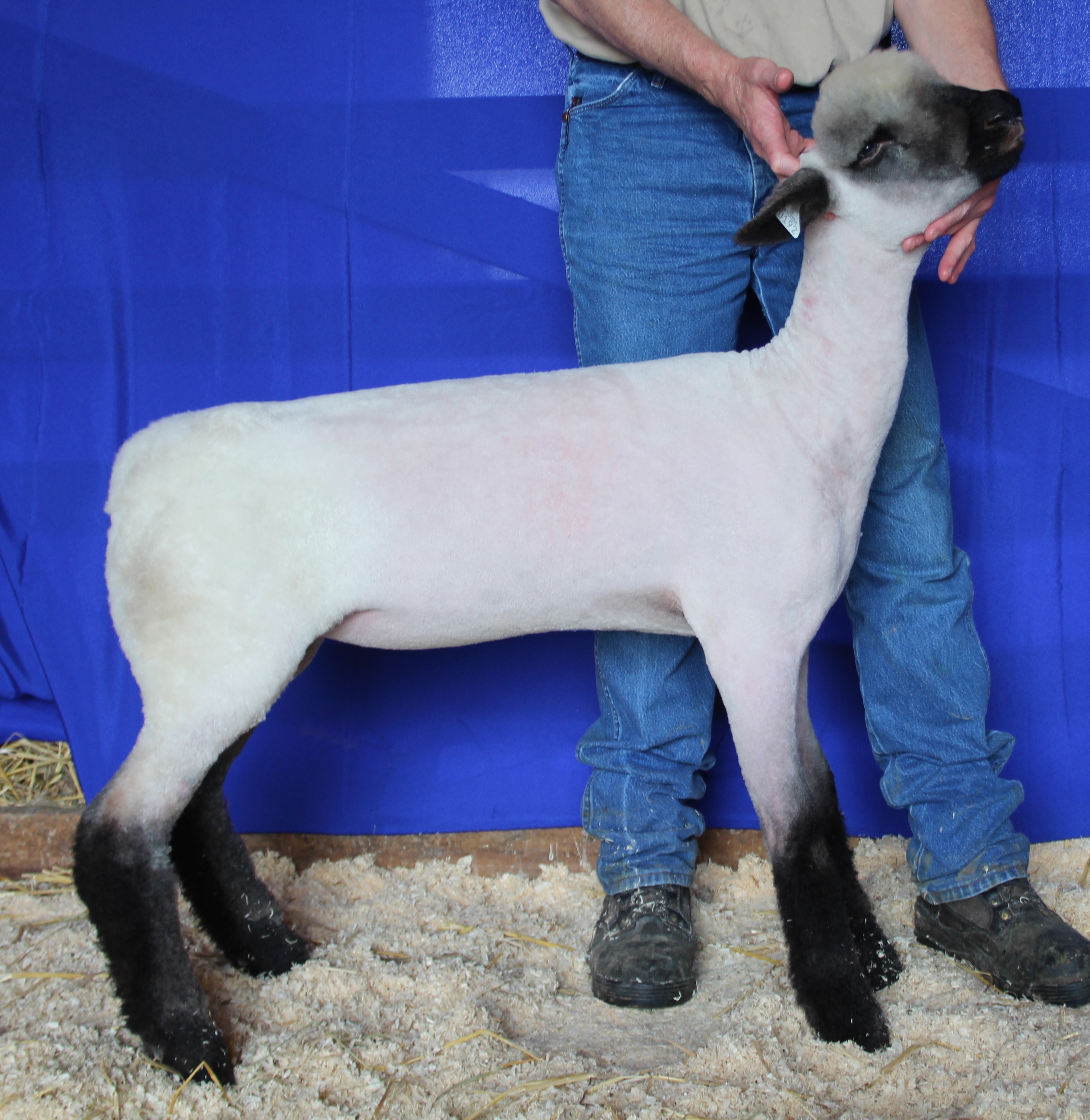 She was 2nd place Late Jr. Ewe Lamb at the 2015 Indiana State Fair Open Oxford Show to Apple 15-18, Lot 14. Good top, depth and size.