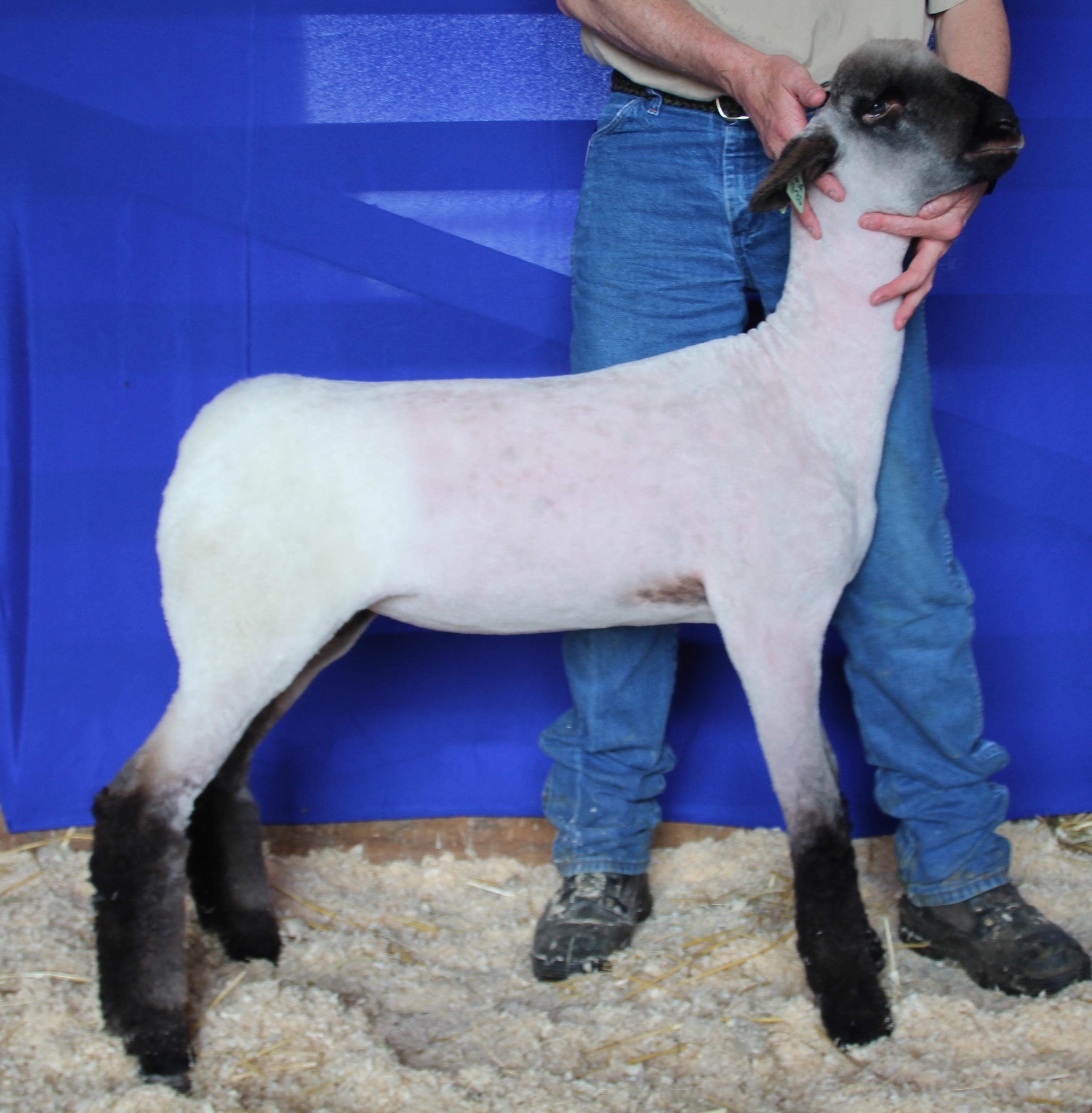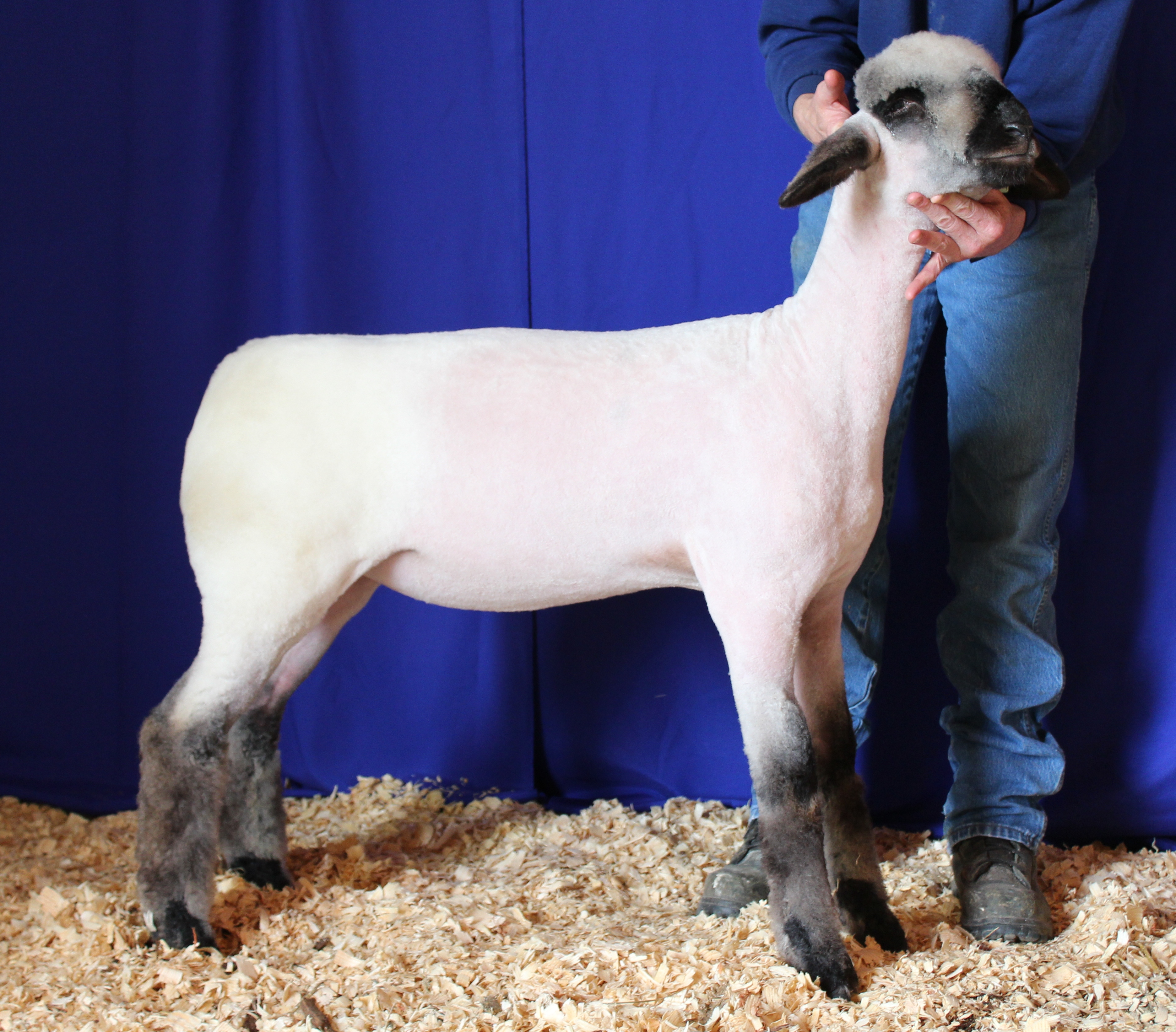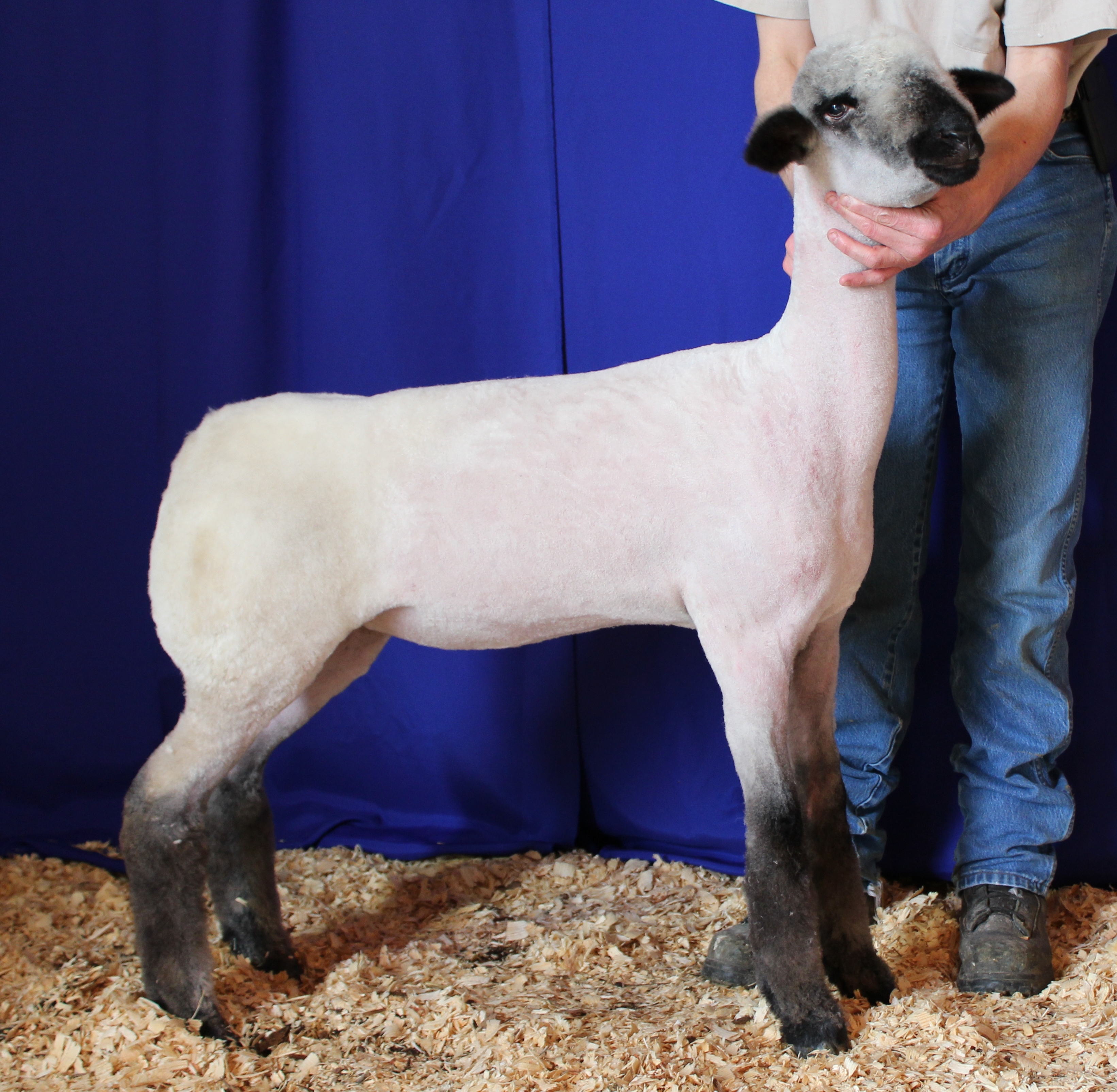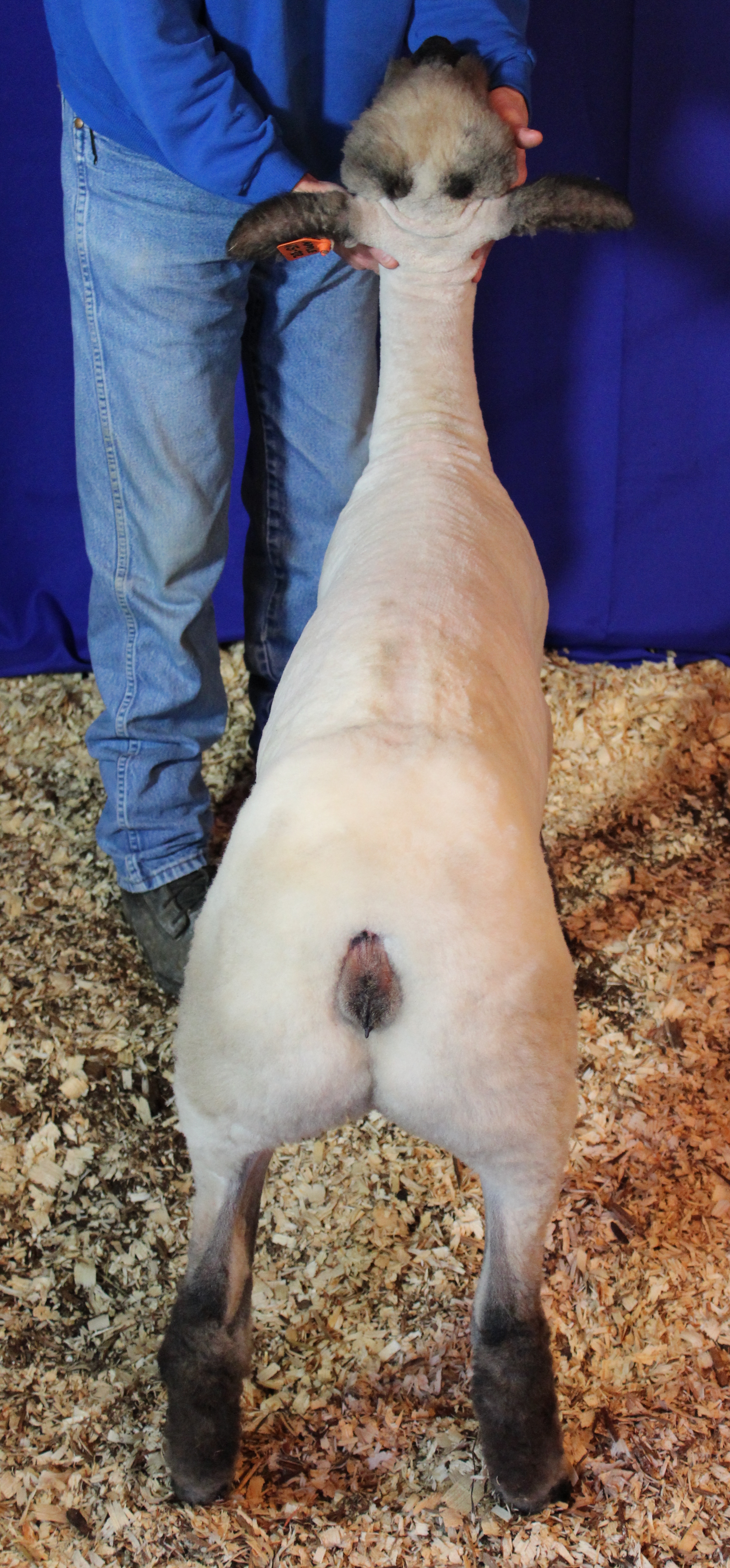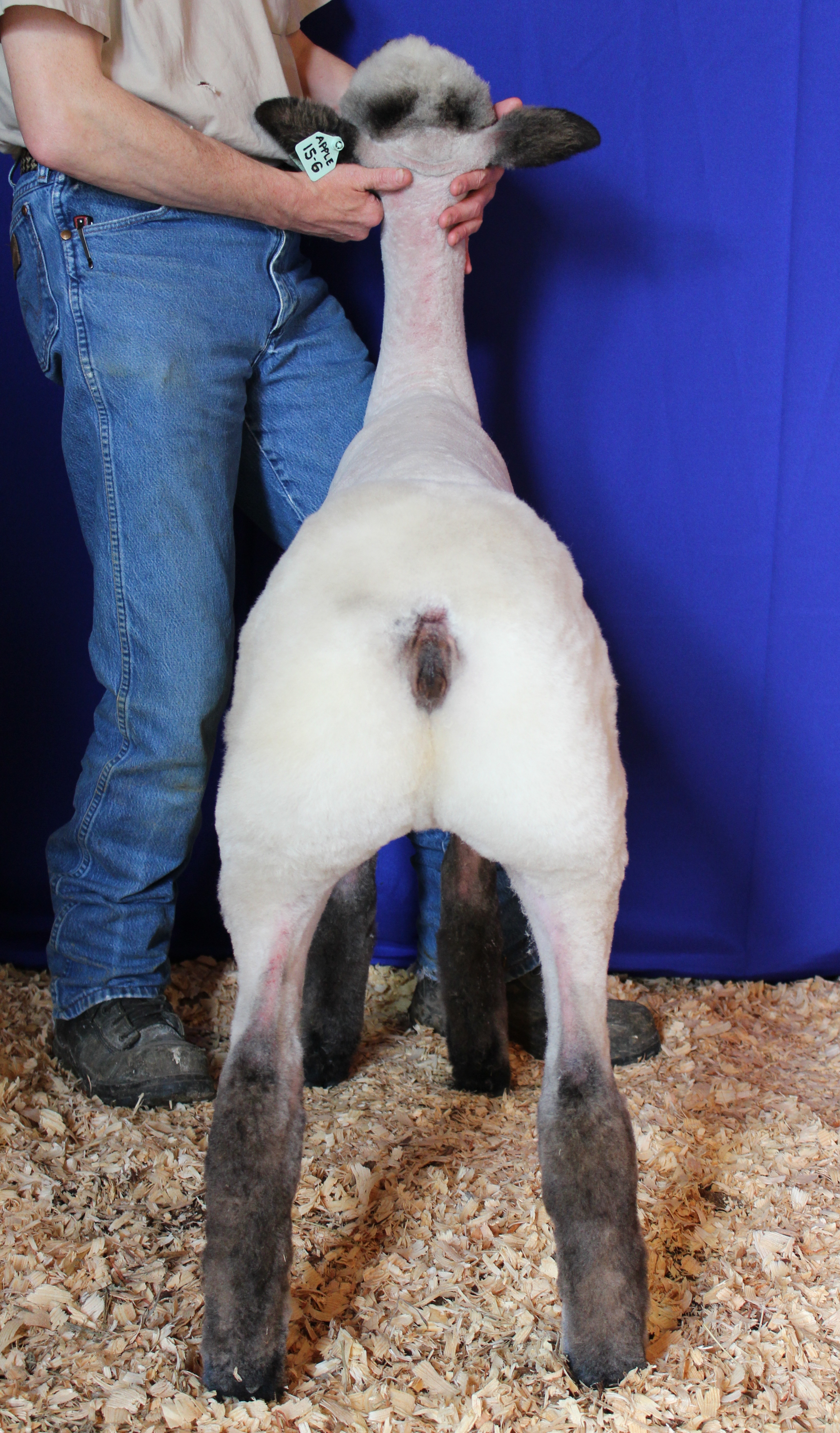 She was 2nd place Late Jr. Ewe Lamb at the 2015 Indiana State Fair Open Oxford Show to Apple 15-18, Lot 14. Good top, depth and size.
