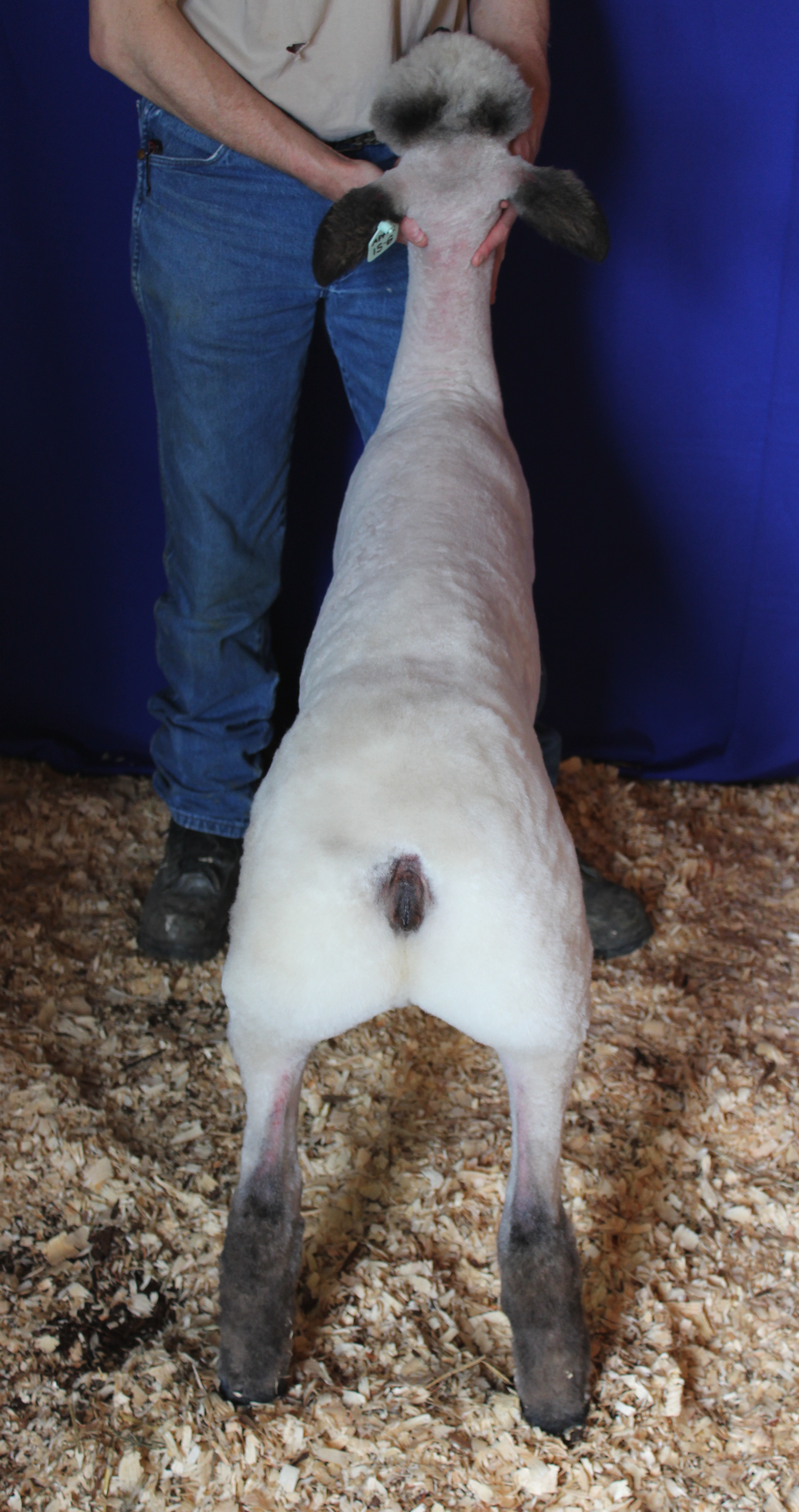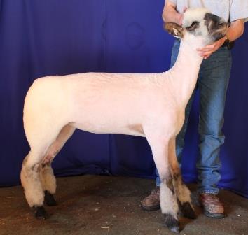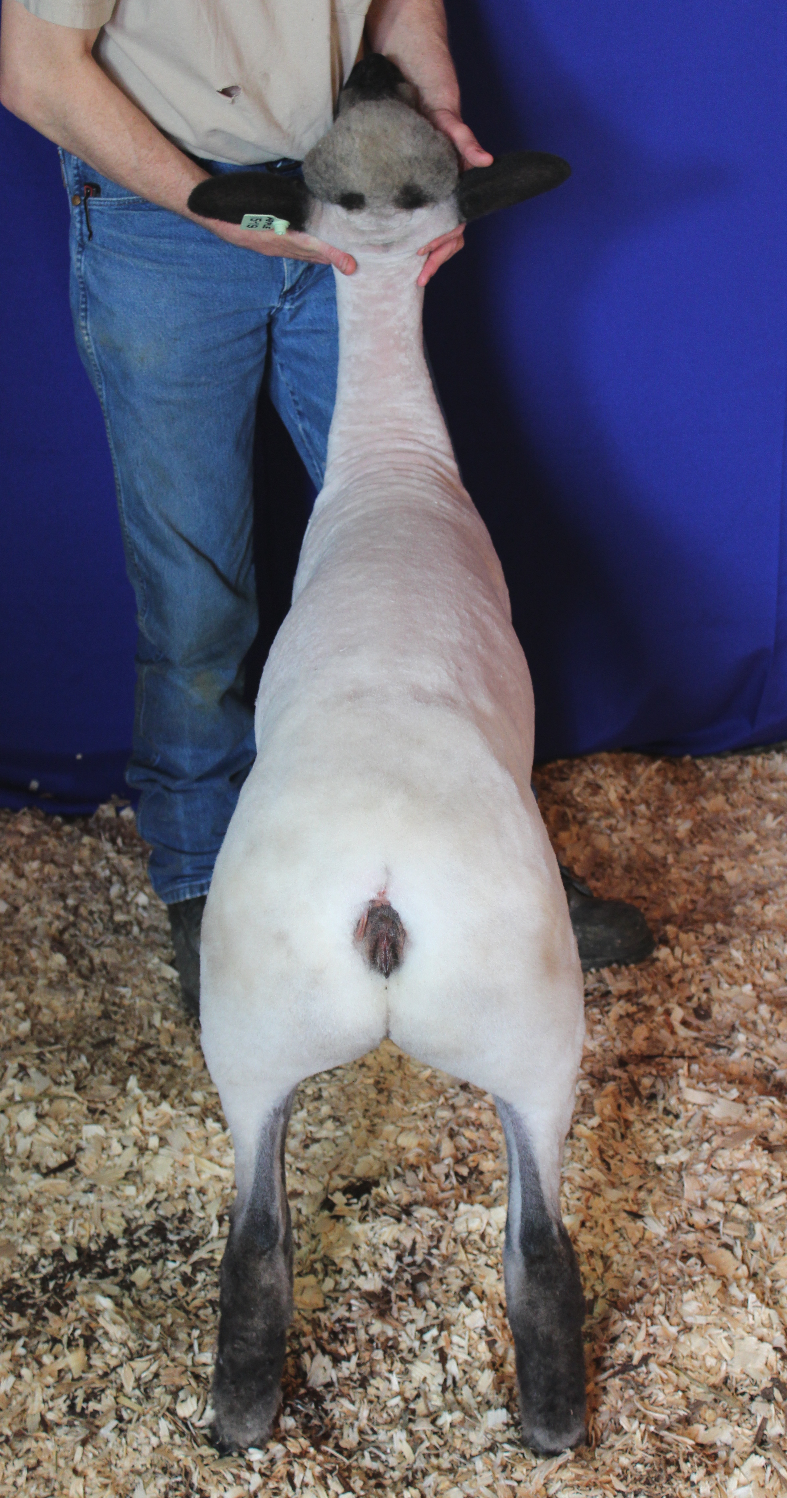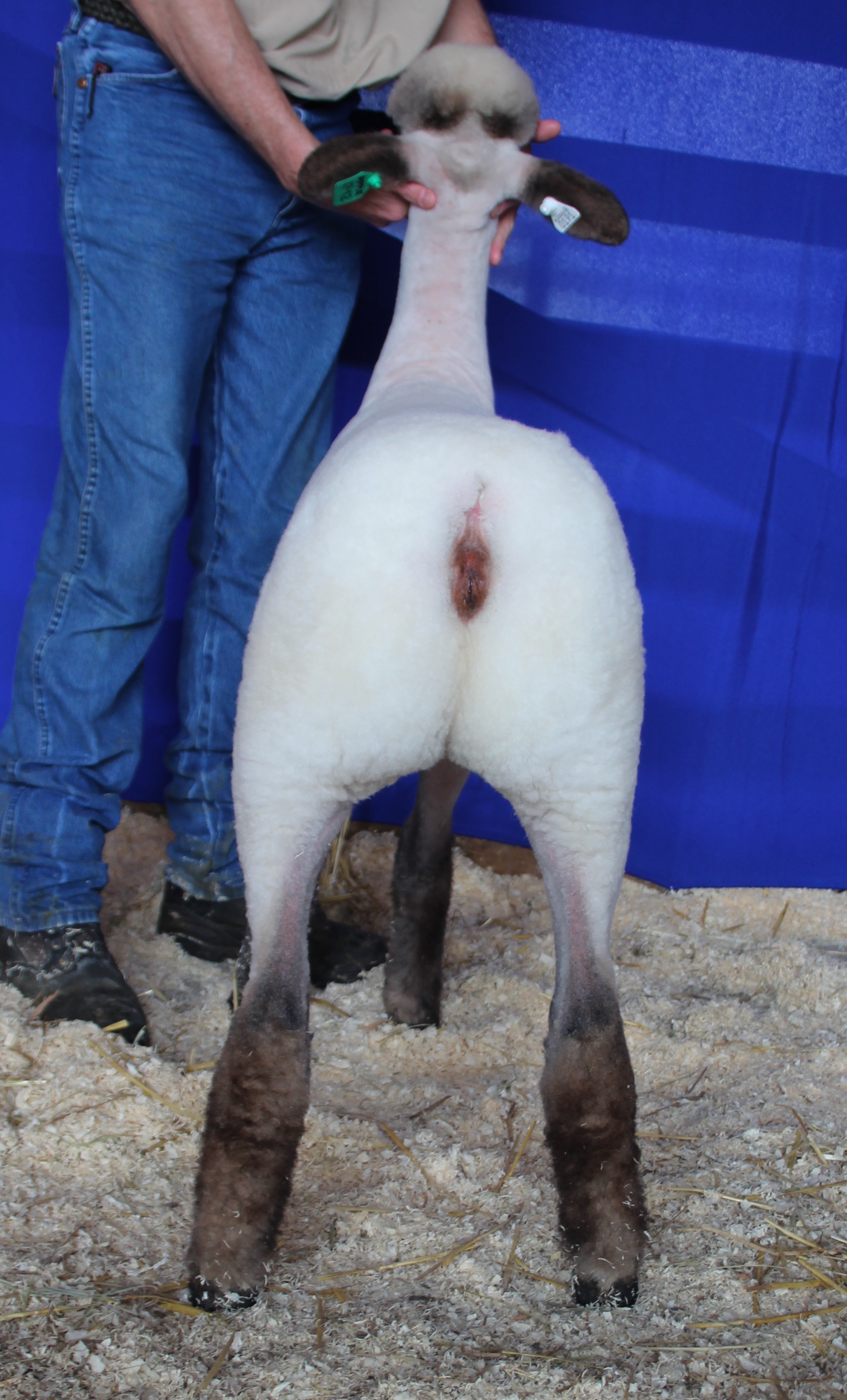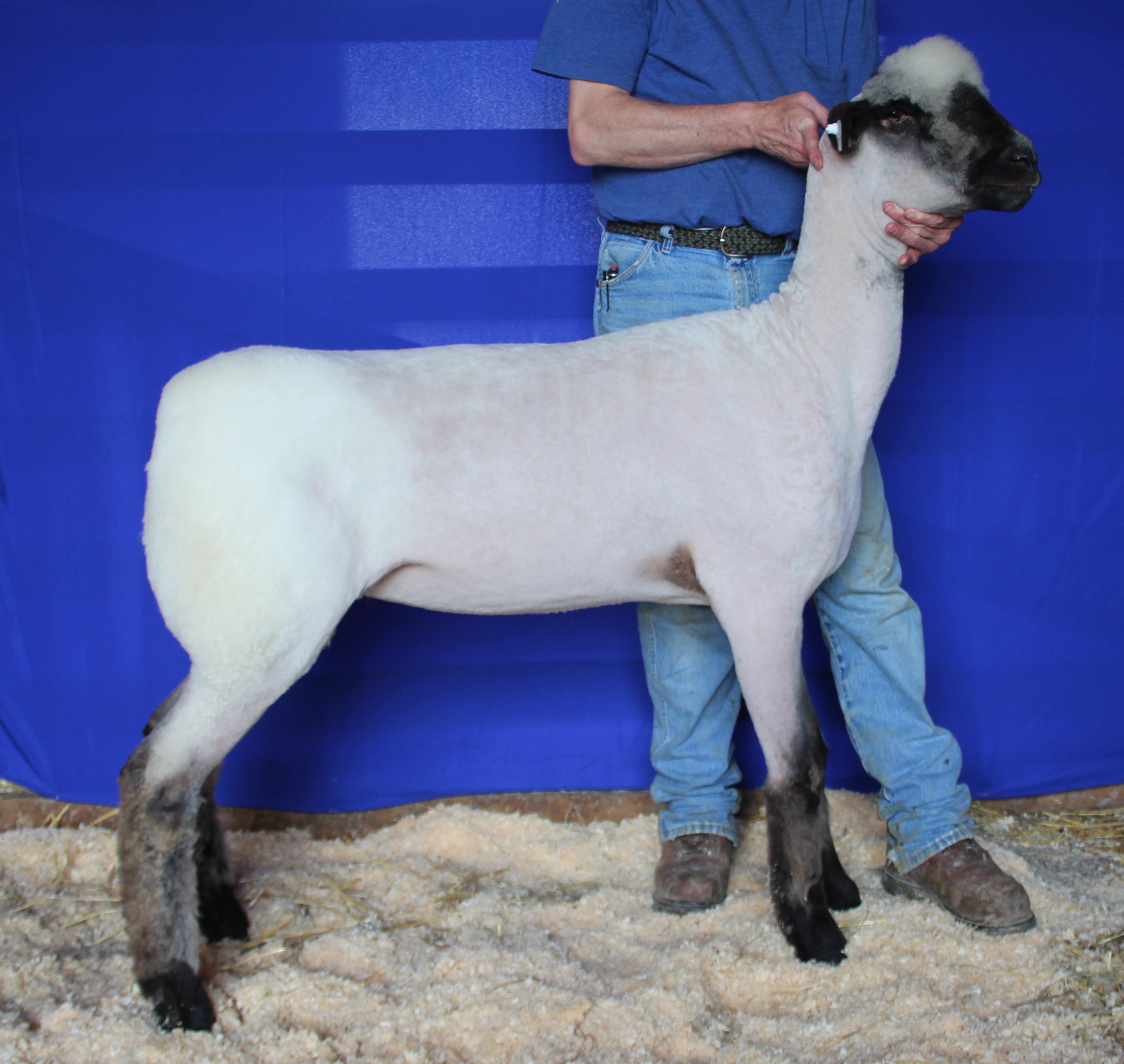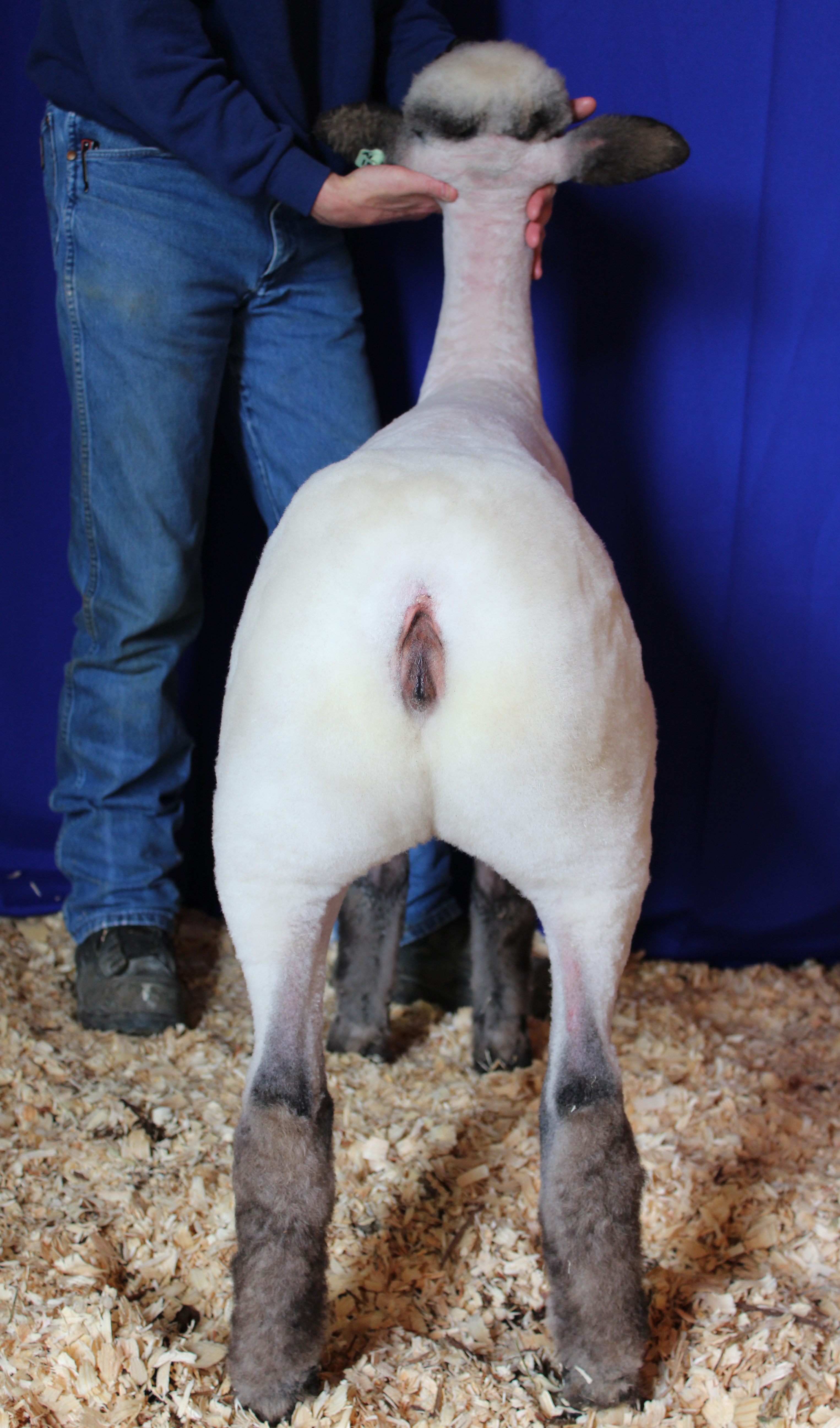 She was 2nd place Late Jr. Ewe Lamb at the 2015 Indiana State Fair Open Oxford Show to Apple 15-18, Lot 14. Good top, depth and size.