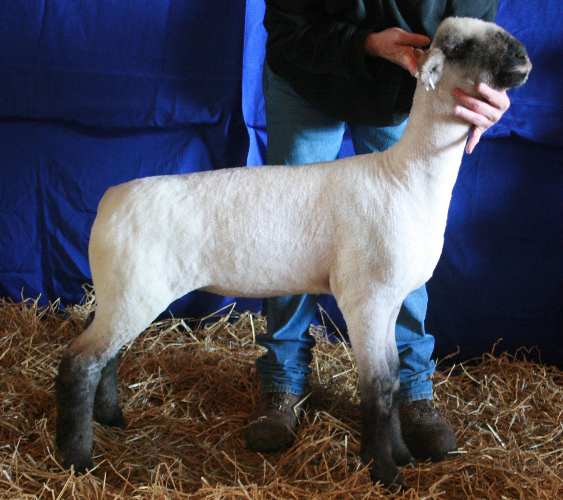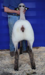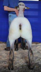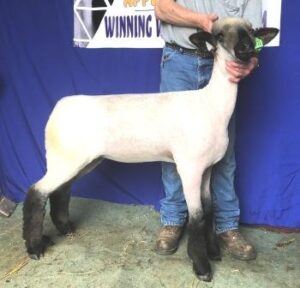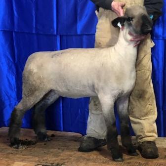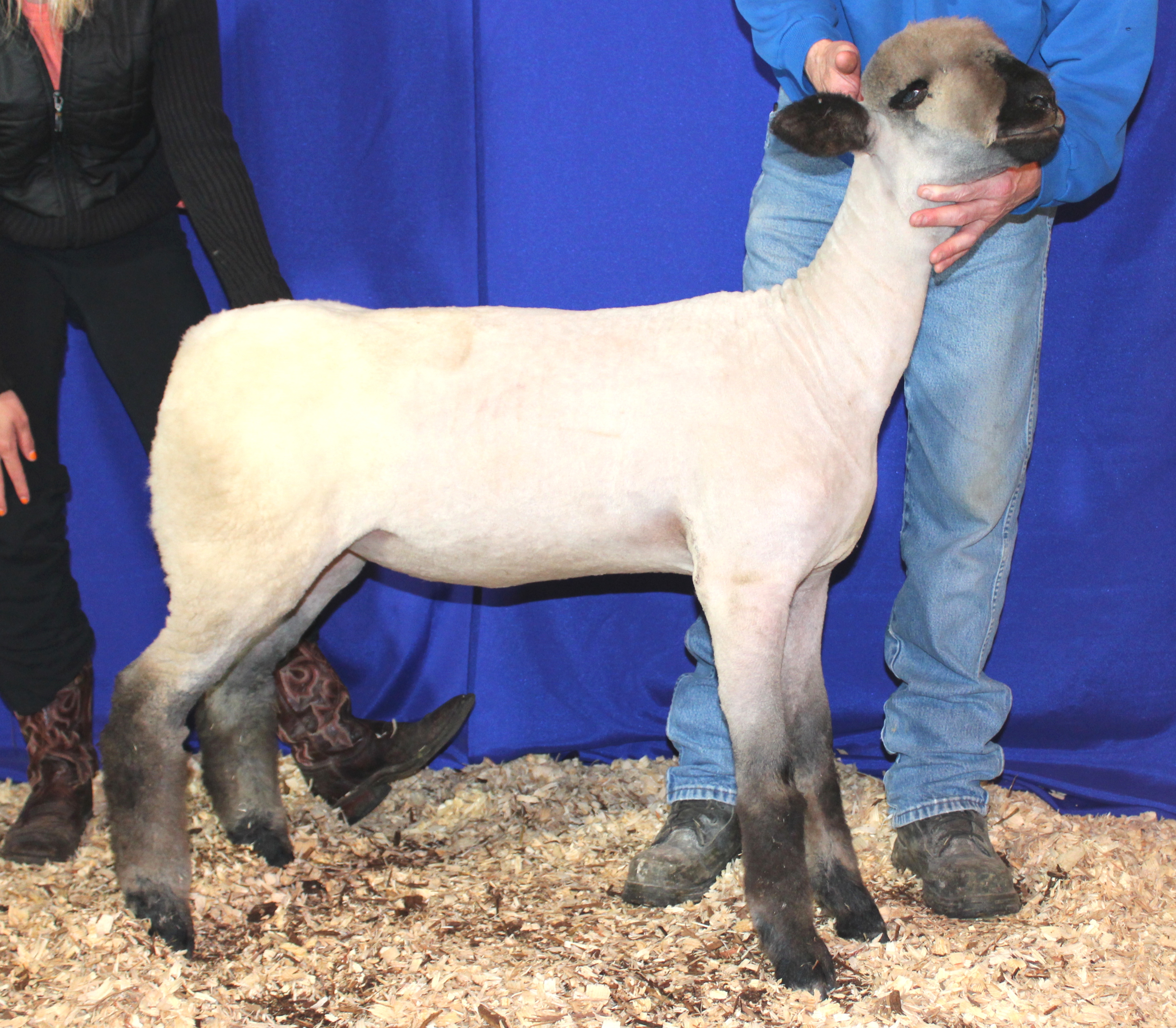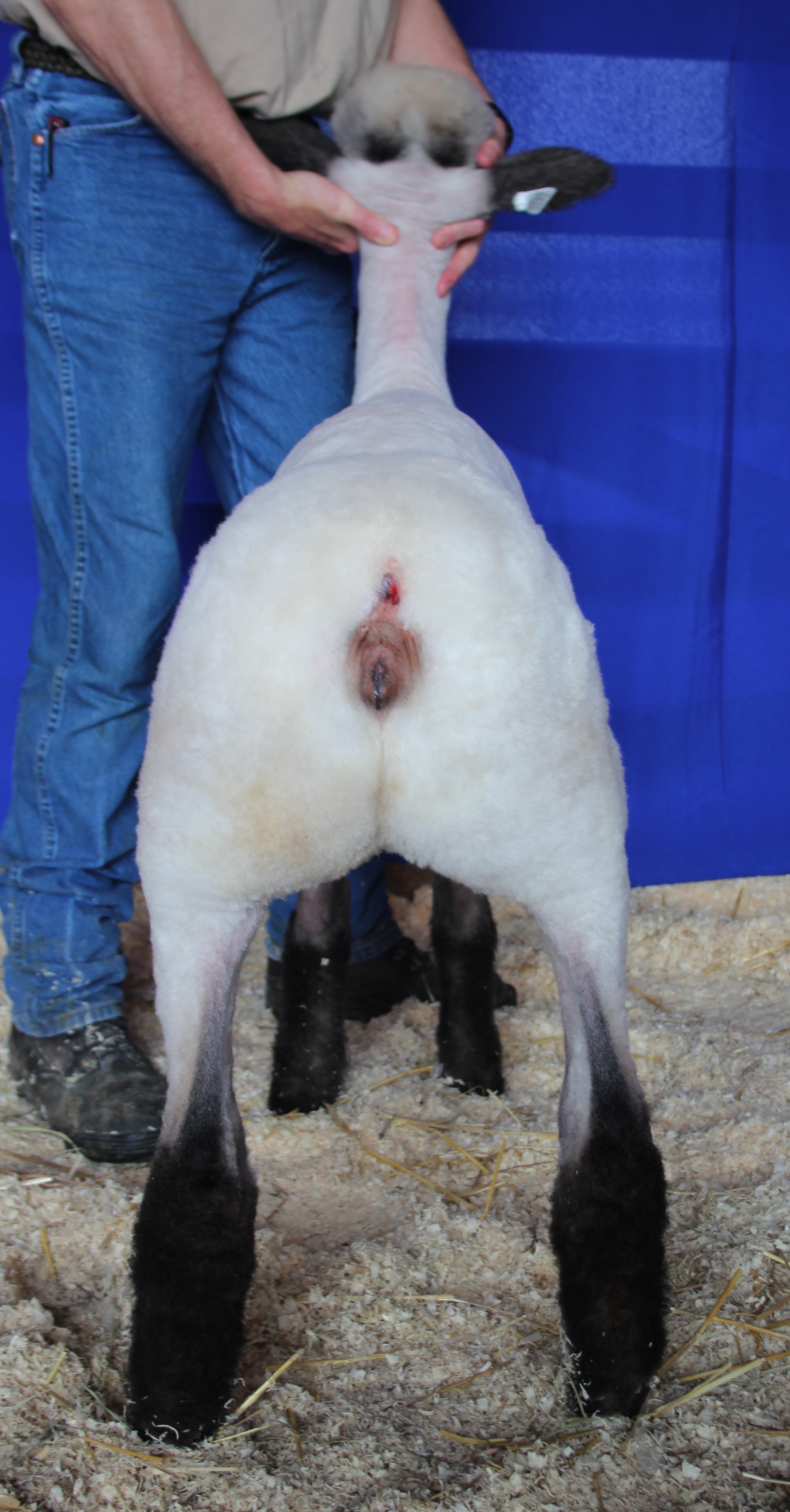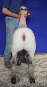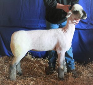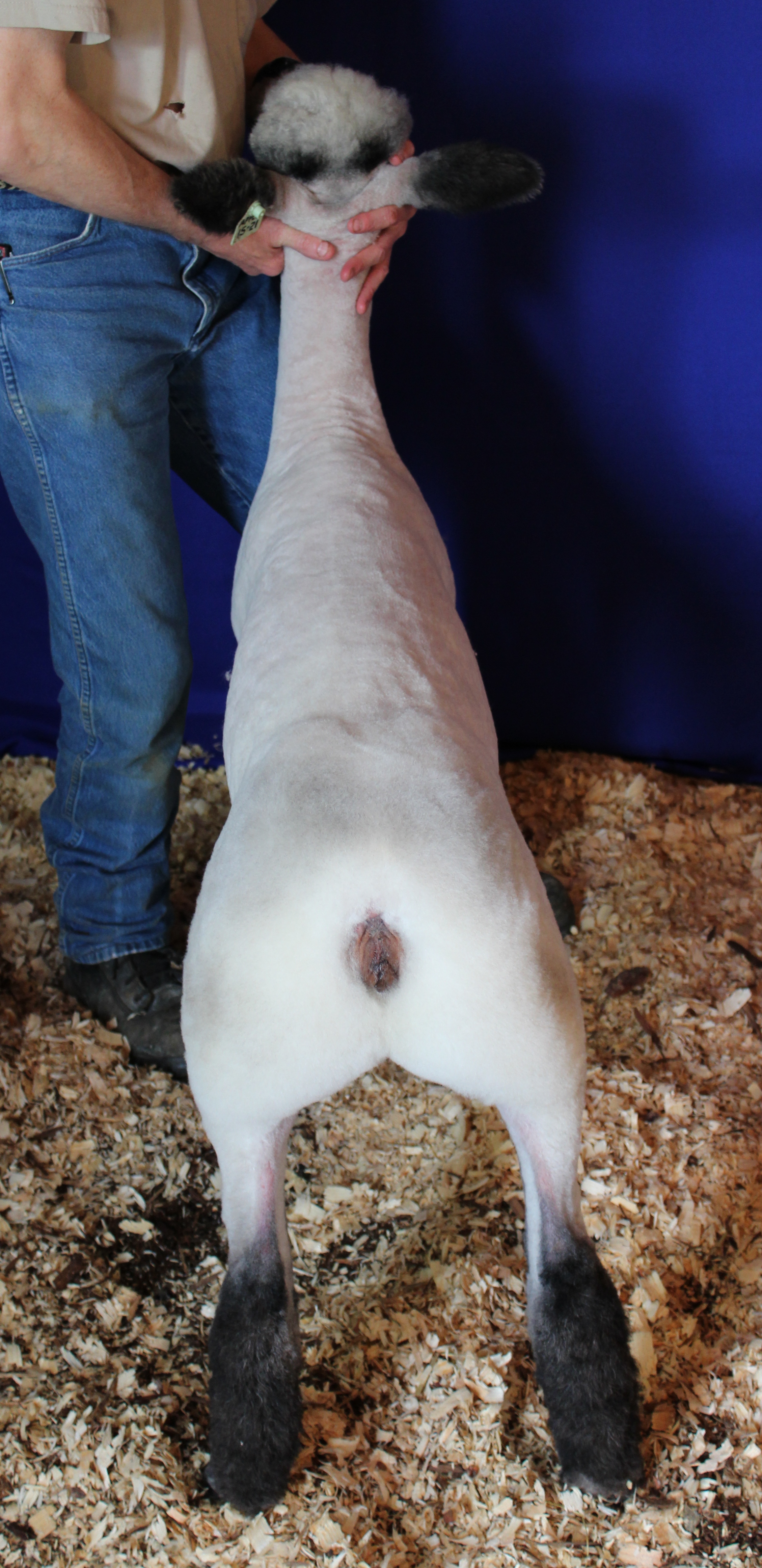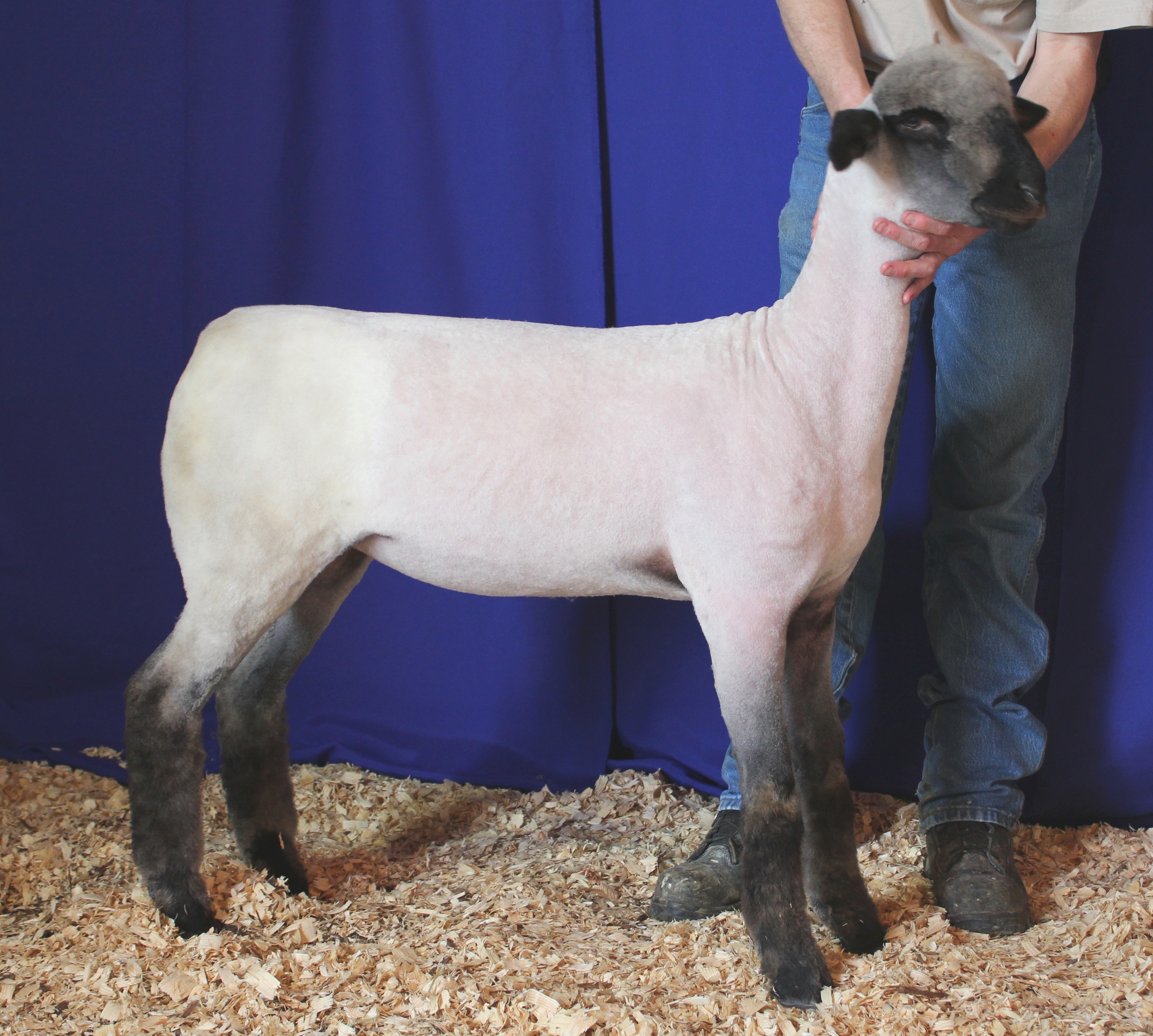 She was 2nd place Late Jr. Ewe Lamb at the 2015 Indiana State Fair Open Oxford Show to Apple 15-18, Lot 14. Good top, depth and size.