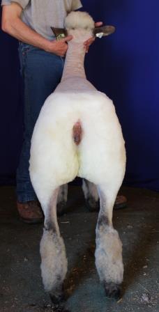 He is well balanced and standing on a huge foot. Sired by “Gus” and tracing back on the dam side to Blome 06-3 “Harry” and one of the first Oxford ewes we purchased, WWSF 9925, mated with Double “A” Oxfords “Legend”.