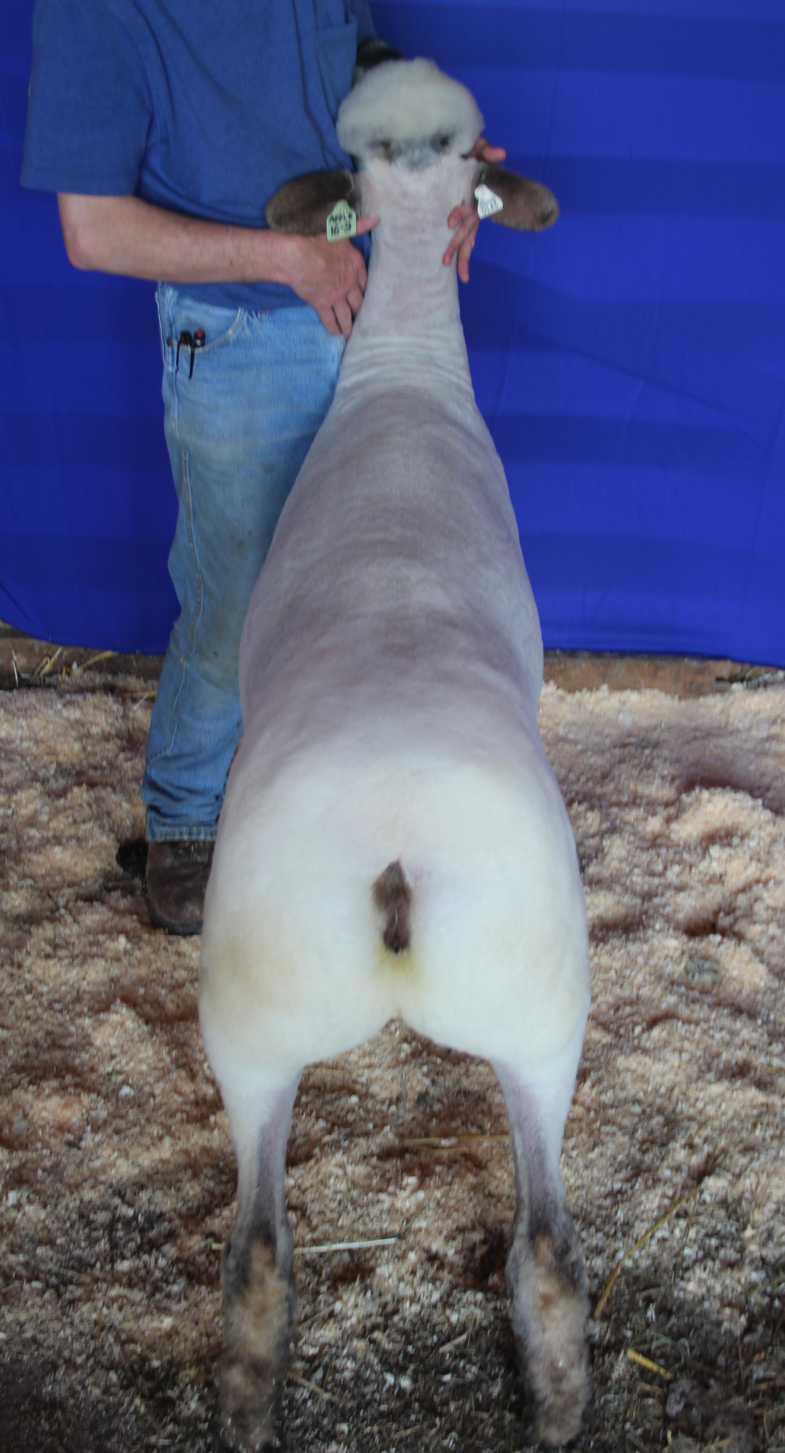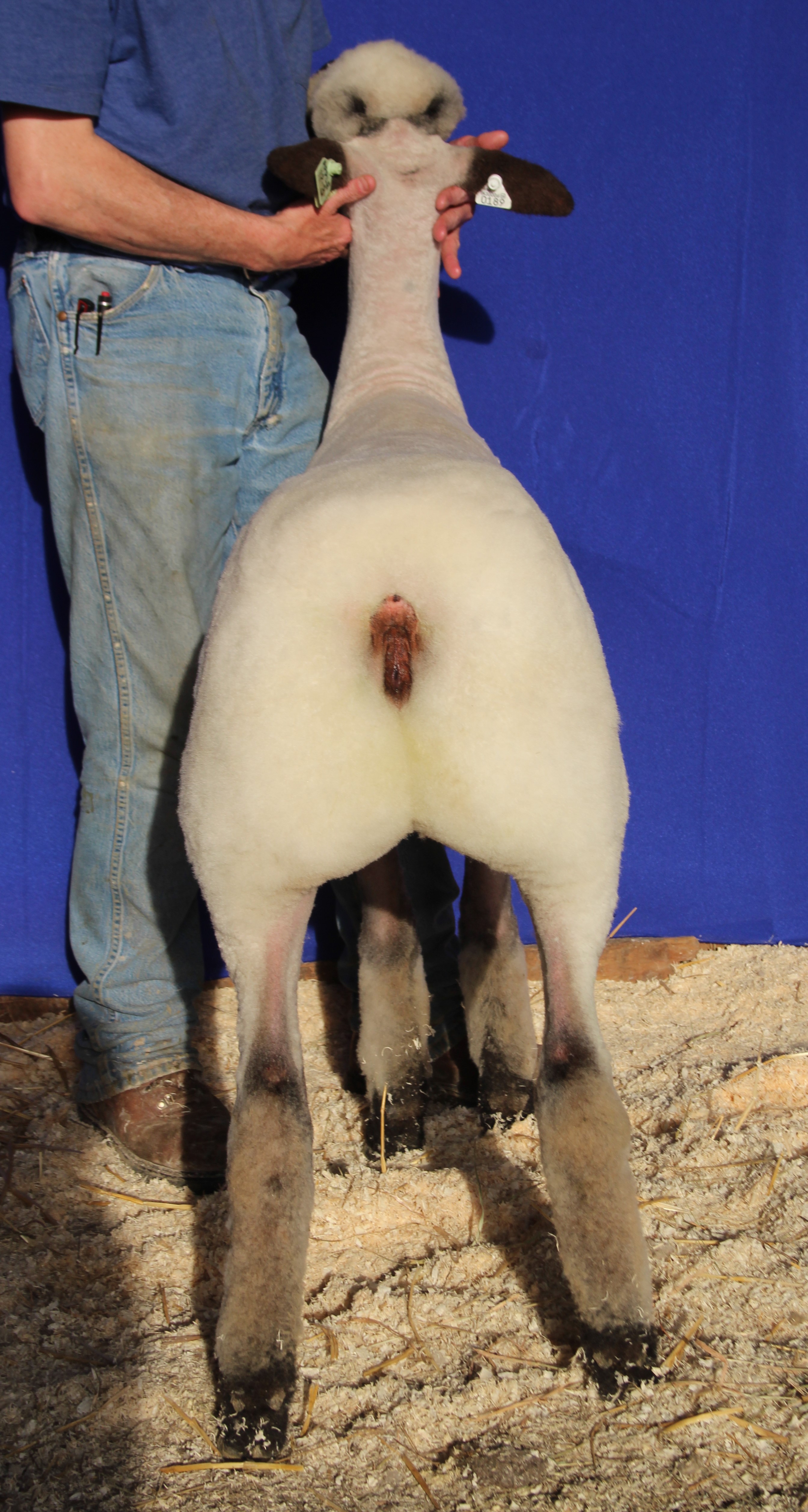 This might be our best yearling ewe long term and in this sale. She never stood out as a ewe lamb but is easy to find in the pen today.