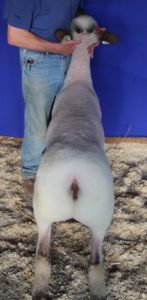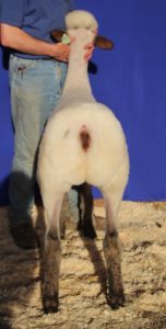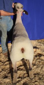 She is sired by our Perzee ram “Cliff Horde” from the successful Perzee 133 (2015 NAILE Junior Show Champion Ram) line. This is the only ewe lamb we had sired by him this year. Stout and thick plus her mother is a milk cow so if you’re looking for that genetic trait, here’s one to check out.