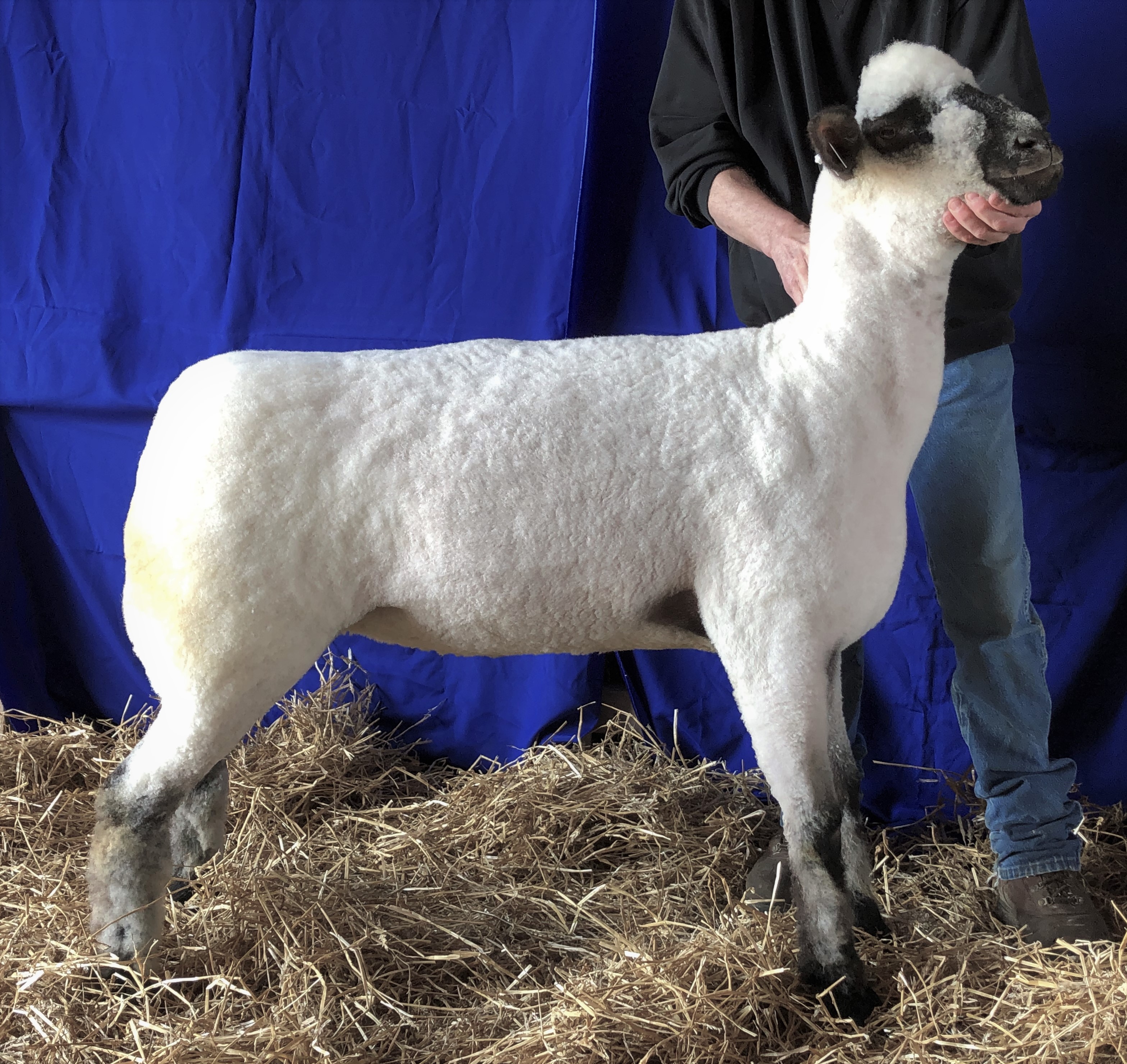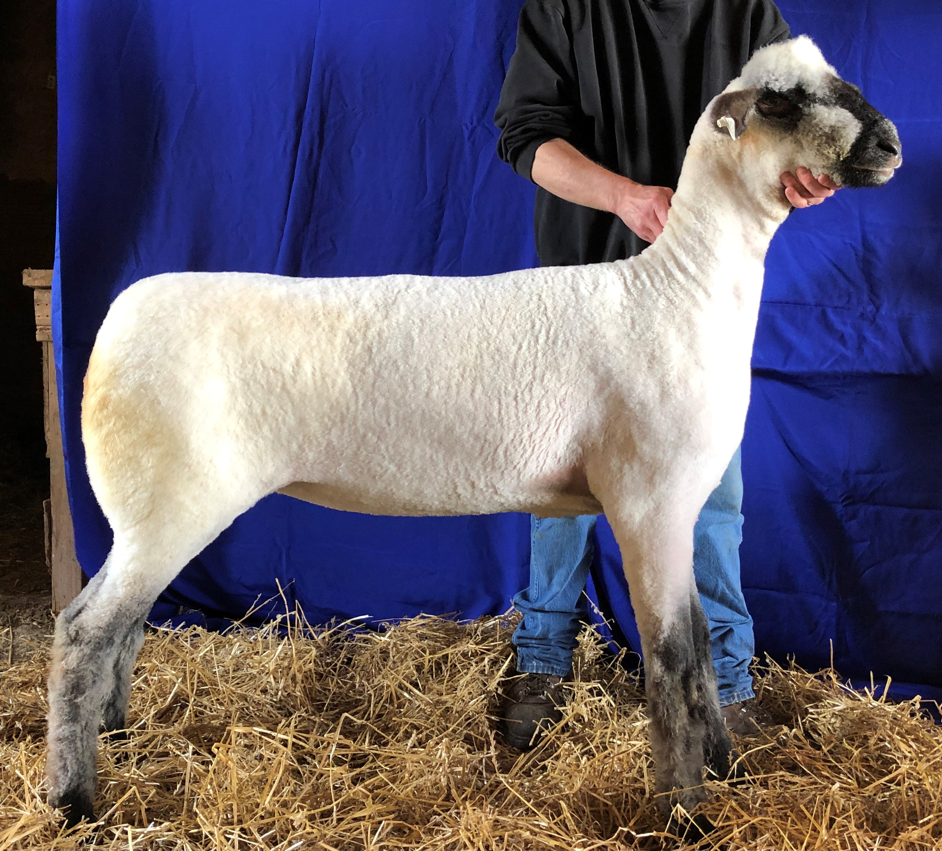 This is a really solid fancy fall ewe lamb. She is sired by WWSF 18-13321A “Pressure”, a full brother to WWSF 17-13321A “Precious”, two-time National Grand Champion Ewe and he was 1st place Yearling Ram at the 2019 NAILE. Her maternal line traces back to DOA’s “Main Event” and “Main Attraction”.