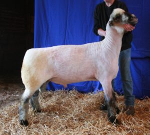 This is the ewe referenced in our Banner ad. I promised she would be for sale this spring and here she is. She was 1st place Late Jr. Ewe Lamb at the 2015 Indiana State Fair Open Oxford Show. Extreme in her makeup but properly fed she could be a really good show ewe.