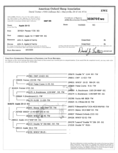 Here’s another “Gus” son on “Gus” daughter mating. In addition to WWSF “Gus” genetics on the sire side, she has the Reid Family Oxfords 9048 ewe we purchased for $2,000 at the 2010 Ohio Oxford Showcase Sale on the dam side. Quite a neat little package.