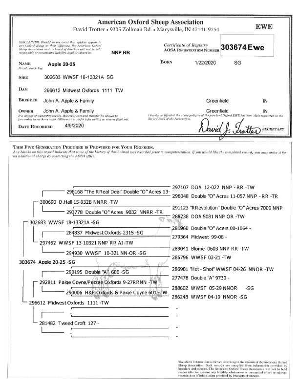 LOT 20 Fall Ewe Lamb (IN30006-0346) **Futurity Nominated